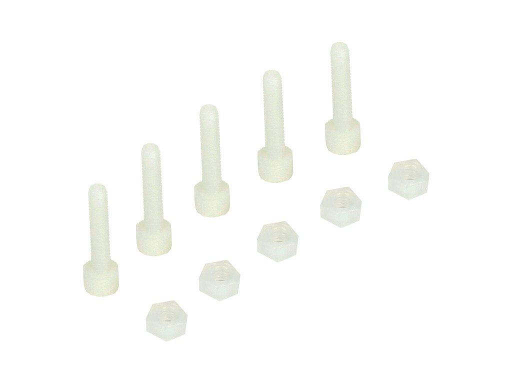 Nylonový šroub se díky své omezené pevnosti používá pro upevnění např. lodních kormidel. V případě najetí kormidla na překážku dojde k přestřižení šroubu, čímž se zamezí poškození kormidla či samotného trupu lodi. Balení obsahuje 5 kusů šroubů včetně matic.
