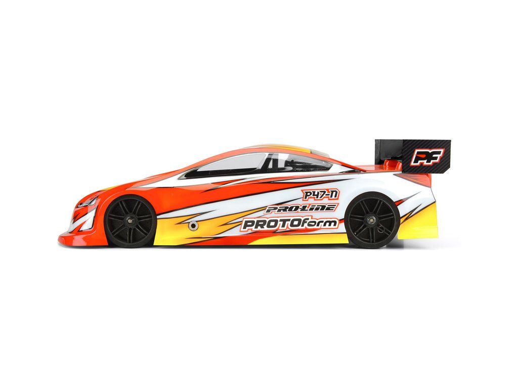 Karosérie Protoform čirá P47-N: 200mm Touring Car pro RC modely aut 1:10, rozvor 258mm, délka 434mm, šířka 203mm. Vyrobeno z odolného lexanu, montážní příslušenství.