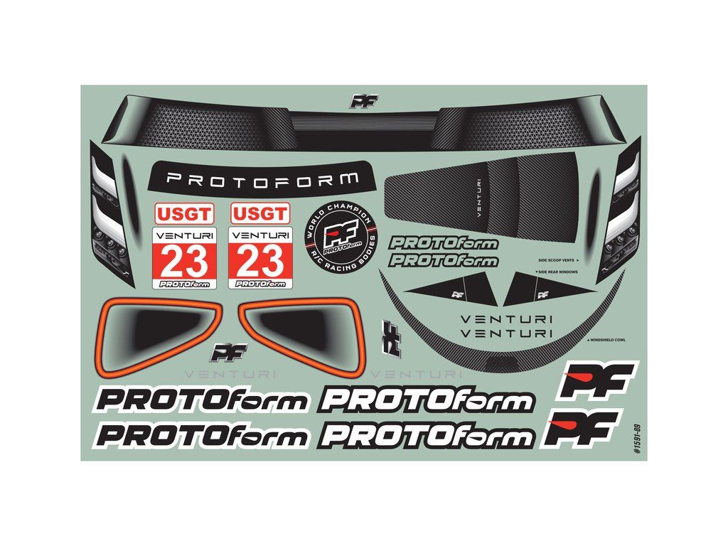 ROTOform karosérie 1:10 Venturi GT (On-road šířka 190mm) s extravysokým přítlakem a nízkým těžištěm. Čirá, nenabarvená karoserie. Vyrobeno z odolného lexanu (cca 90g). Kabina posunutá dopředu zajistí výjimečné jízdní vlastnosti. Dvě polohy křídla.