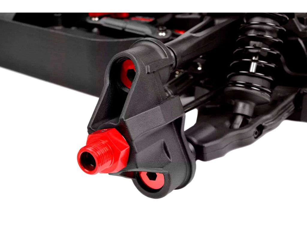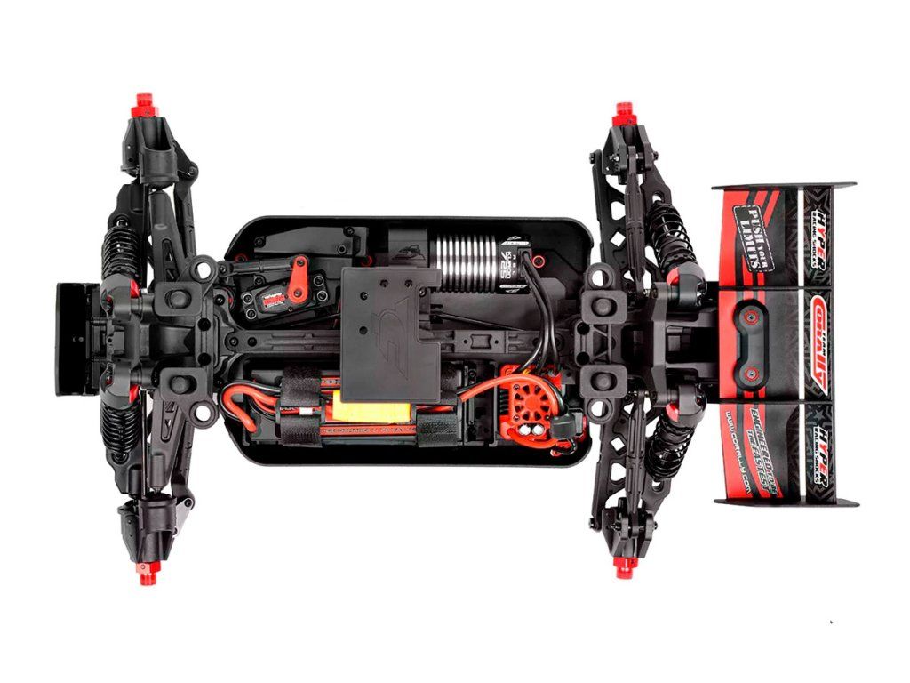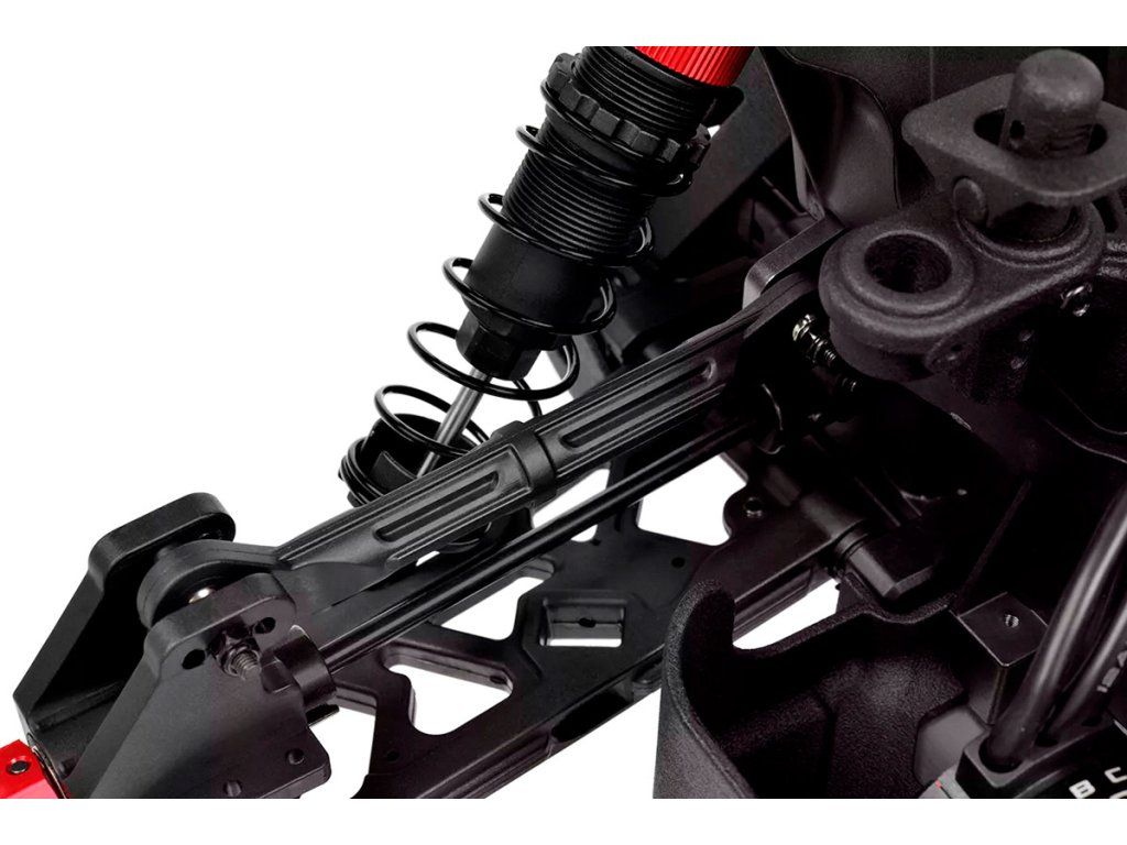 Jeho hybridní hliníkový držák motoru nabízí tři polohy motoru pro přesné nastavení vůle pastorku. Zesílené hnací ústrojí s ocelovými unašeči a robustním hlavním převodovým převodem 52T zajišťuje dlouhou životnost. Široké těhlice z Kagamy a Sketeru dodávají stabilitu a schopnosti v terénu, zatímco nové wheelie kolečko pomáhá zvládat obrovský výkon. Od střídavého motoru Kuron 725 až po regulátor Torox 135 - každá součástka přispívá ke vzrušující maximální rychlosti přes 80 km/h. Vysílač CT2S 2,4 GHz, systém vyztužení podvozku a křídlo s vysokou přítlačnou silou doplňují balíček, takže Punisher4 je skutečným důkazem odkazu inovací a výkonu firmy Team Corally.