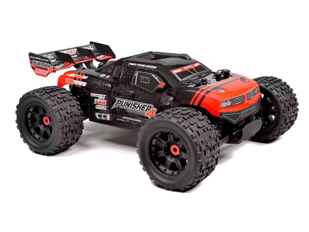 Punisher4, RC monster truck XL4S, je navržen pro začátečníky i zkušené bashery. Je postaven na stejném podvozku jako model Syncro4 a přináší inovativní funkce za bezkonkurenční cenu. Nové velkoobjemové kompozitové tlumiče, extrémně odolné kompozitové parohy tlumičů a zesílený systém výztuh podvozku jsou příkladem dokonalé kombinace odolnosti a výkonu. Díky výraznému hliníkovému podvozku v titanové barvě, ochranným deskám, novému wheelie kolečku a aerodynamickému křídlu Punisher4 nově definuje off-road styl.