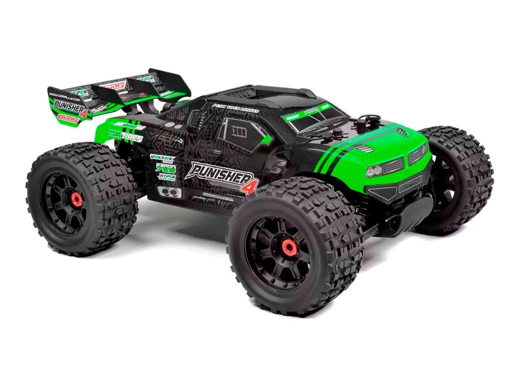 Punisher4, RC monster truck XL4S, je navržen pro začátečníky i zkušené bashery. Je postaven na stejném podvozku jako model Syncro4 a přináší inovativní funkce za bezkonkurenční cenu. Nové velkoobjemové kompozitové tlumiče, extrémně odolné kompozitové parohy tlumičů a zesílený systém výztuh podvozku jsou příkladem dokonalé kombinace odolnosti a výkonu. Díky výraznému hliníkovému podvozku v titanové barvě, ochranným deskám, novému wheelie kolečku a aerodynamickému křídlu Punisher4 nově definuje off-road styl.
