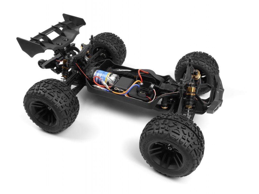 Stejnosměrná varianta dostala po dlouhodobém testování motor 12T 550, který v kombinaci s menším 12T pastorkem vydrží nároky tohoto stadium trucku.
