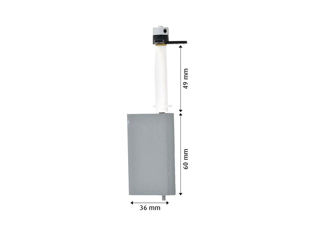Raboesch kormidlo kompletní o rozměru listu 36x60mm. Má průchozí vložku 8mm do trupu a dvojitou řídící páku z nylonu. Závit na hřídeli usnadňuje instalaci do trupu lodi. Dodáváno s mosaznou maticí, podložkou a těsněním.