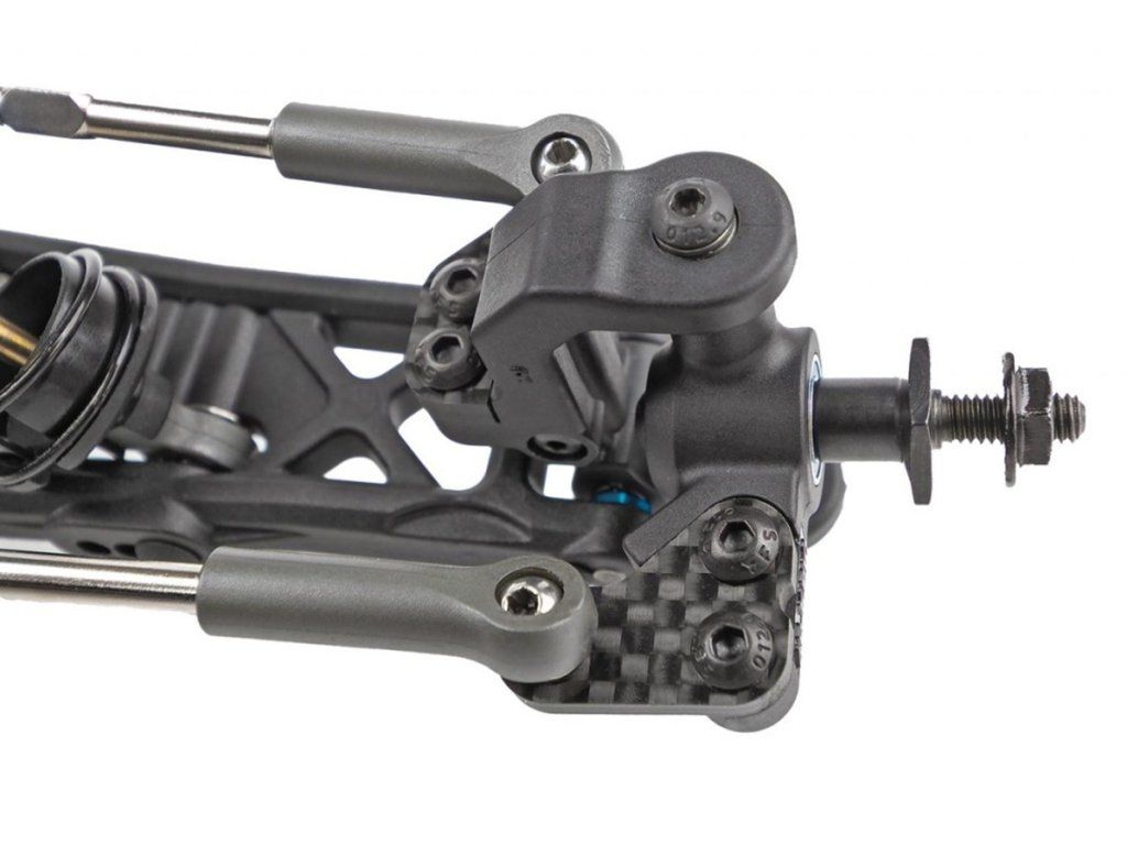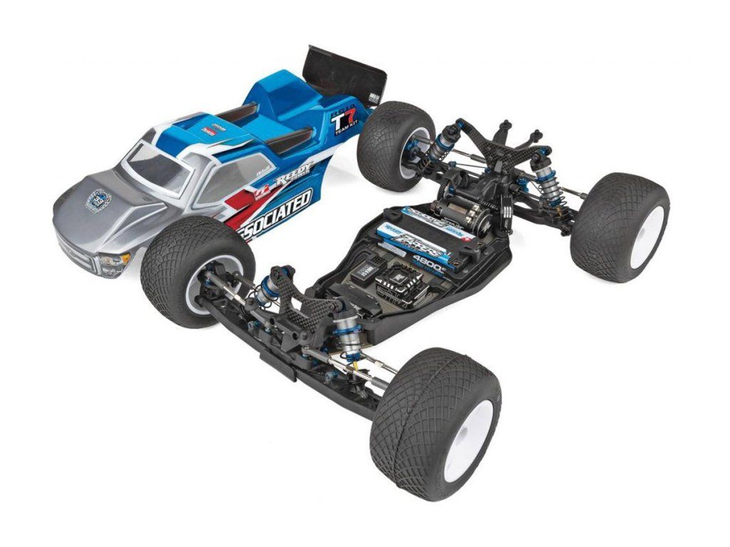 RC10T7 sdílí klíčové komponenty s buggy podvozky RC10B7 a RC10B7D, což usnadňuje závodění ve více kategoriích. Hlavní změnou v zavěšení je snížení těžiště pomocí kratších 25mm předních a 31mm zadních 13mm big-bore tlumičů. Nový design podvozku truggy je odolnější verzí buggy RC10B7 a je vybaven novým zavěšením s dlouhými rameny typu „gull wing“, které zlepšuje přilnavost a předvídatelnost za všech podmínek. Kromě toho sada obsahuje aktualizované těhlice řízení 0 KPI a aktualizované caster závěsy, spolu s tradičními funkcemi B7 pro ladění přední části. Nová ocelová přední vnitřní výztuha držáku os ramen a aktualizované závěsy B7 V2 zvyšují odolnost přední části. Nový RC10T7 nabízí stejná montážní místa spolu s hardwarem stabilizátoru jako RC10B7 a zároveň se dobře hodí k širokým stabilizátorům, které pasují na nová ramena zavěšení.