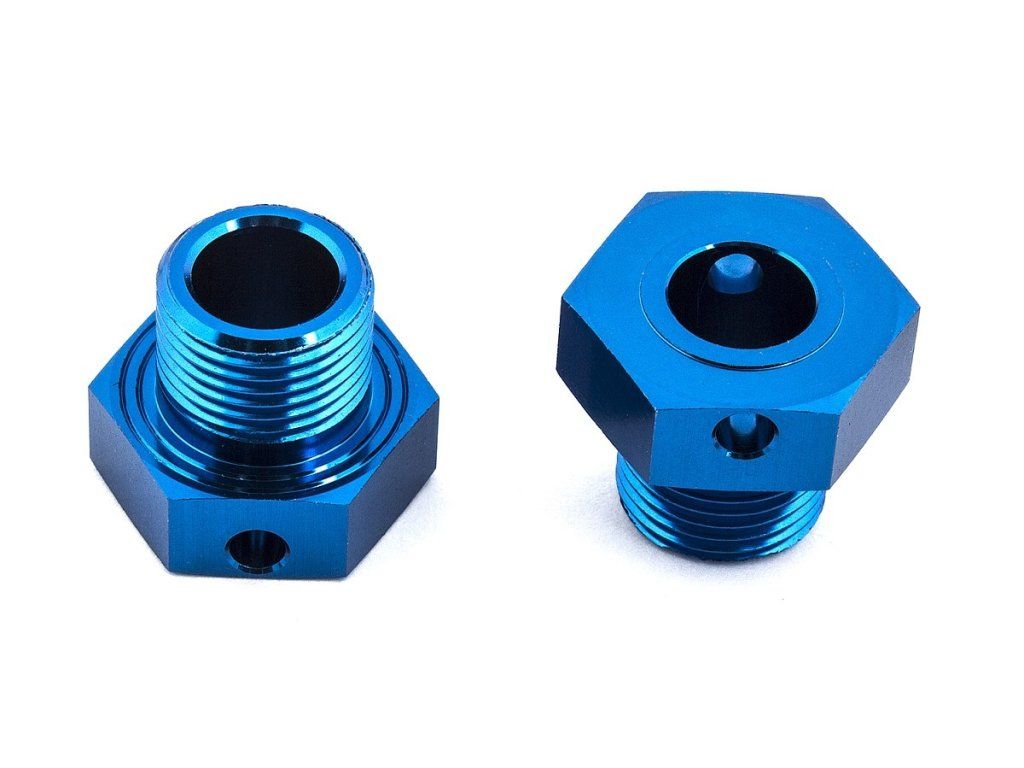 RC8B3 hliníkové unašeče kol, modré, +2mm, 2 ks