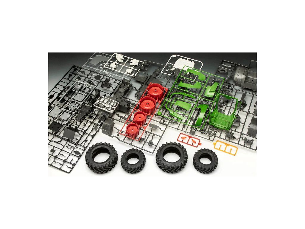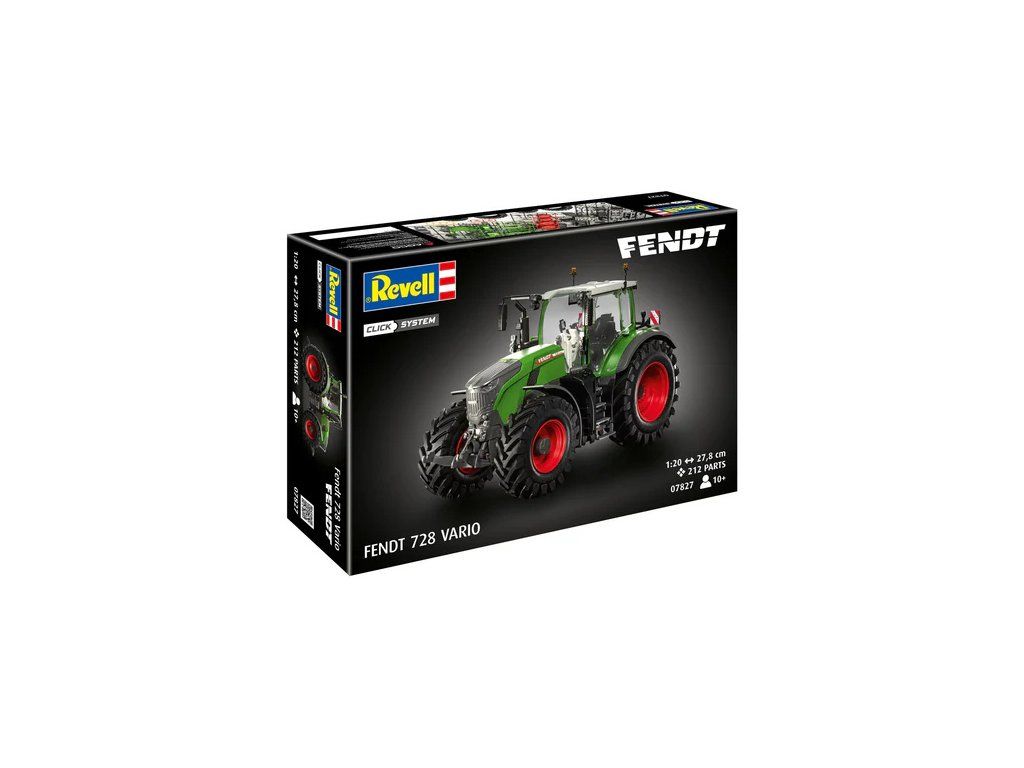 Plastikový model Revell 07827 - traktor Fendt 728 Vario v měřítku 1:20 k sestavení. Stavebnice obsahuje 212 dílků, obtížnost 2.