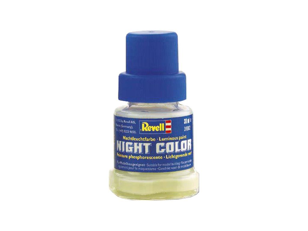 Revell Night Color je fosforeskující barva, která svítí ve tmě. Ideální pro světelné efekty a rybářských čihátek. Balení 30ml.