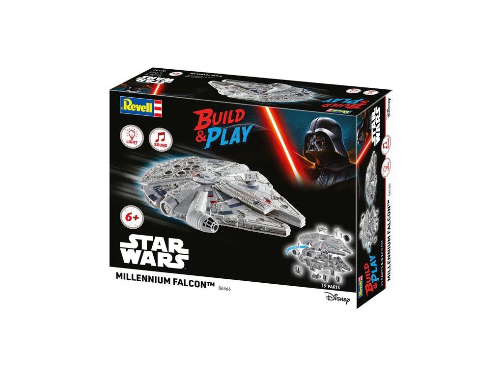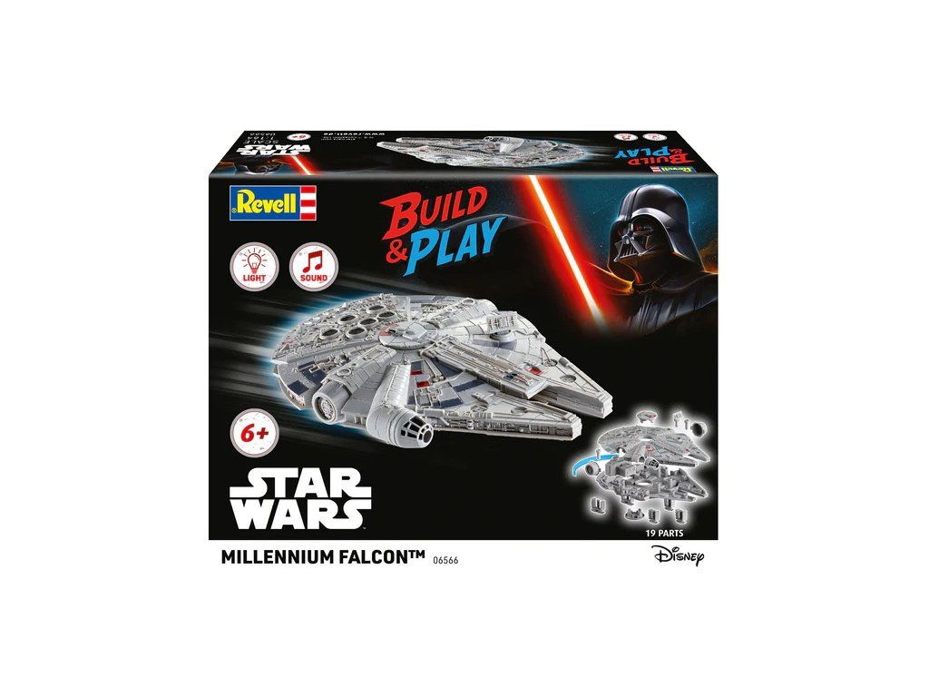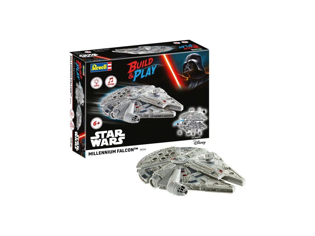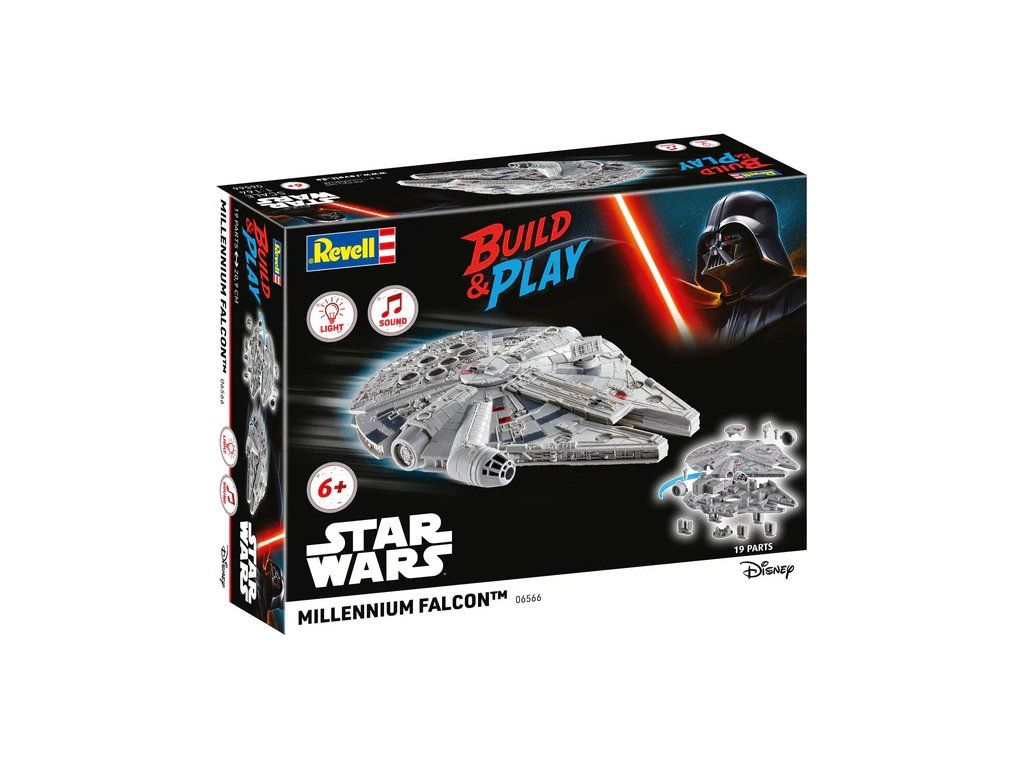 Plastikový model Revell 06566 – Star Wars Millennium Falcon v měřítku 1:164 ke slepení. Stavebnice obsahuje 19 dílků, obtížnost 1.
