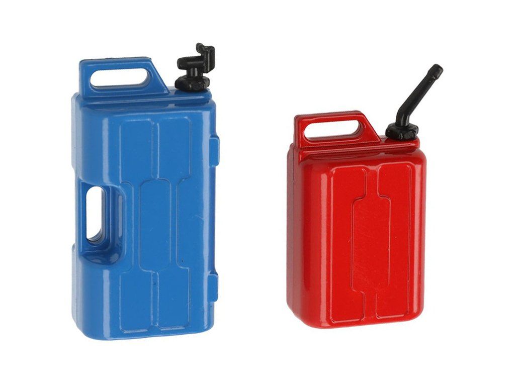 Robitronic kanystr na benzín a vodu, rozměry 52x25x19mm a 41x25x19mm. Materiál plast.