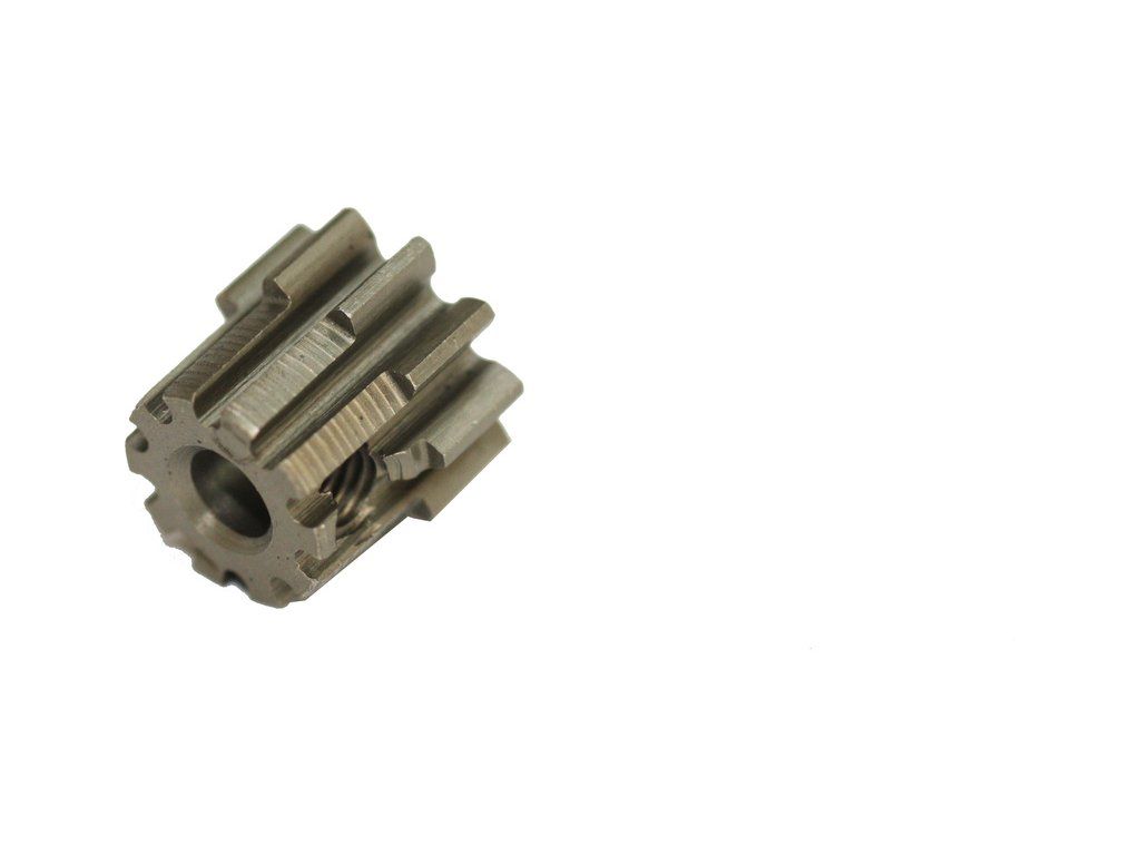 Robitronic pastorek na hřídel 3.17 mm (1/8") s 10 zuby a modulem ozubení 32DP (0,8 mm) pro RC modely aut. Vyrobeno z kalené oceli.