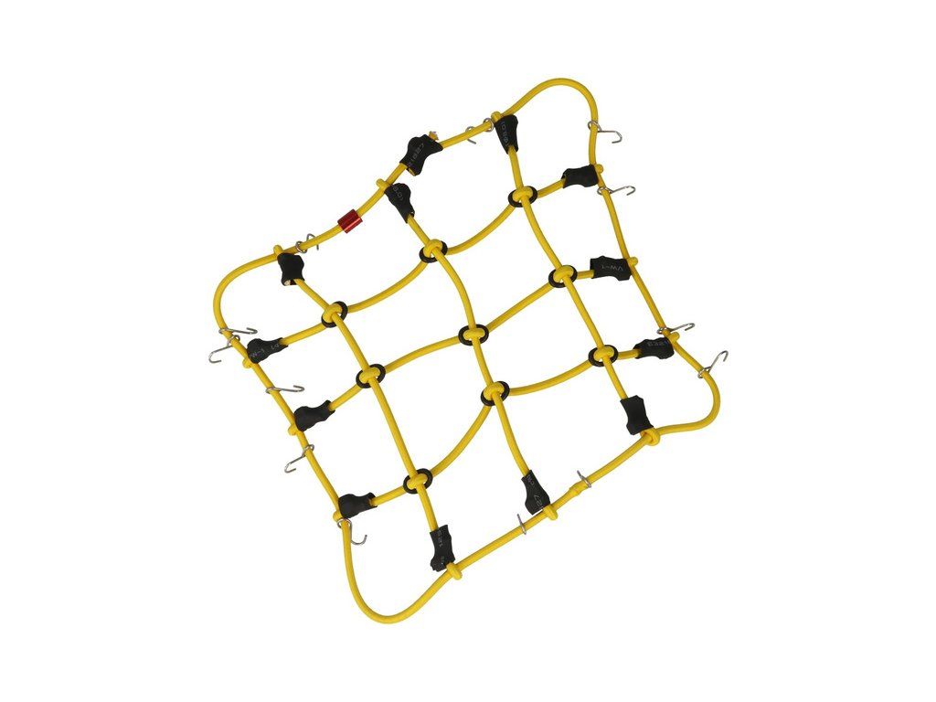 Robitronic Vám nabízí poutací síť s háčky pro RC modely aut. Pokud převážíte zavazadla nebo těžký náklad poutací síť je skvělý pomocník. Síť je pletena ze žluté kloboukové gumy 3 mm, rozměr je 150 mm x 120 mm. Na každé straně jsou umístěny 3 háčky pro připevnění.
