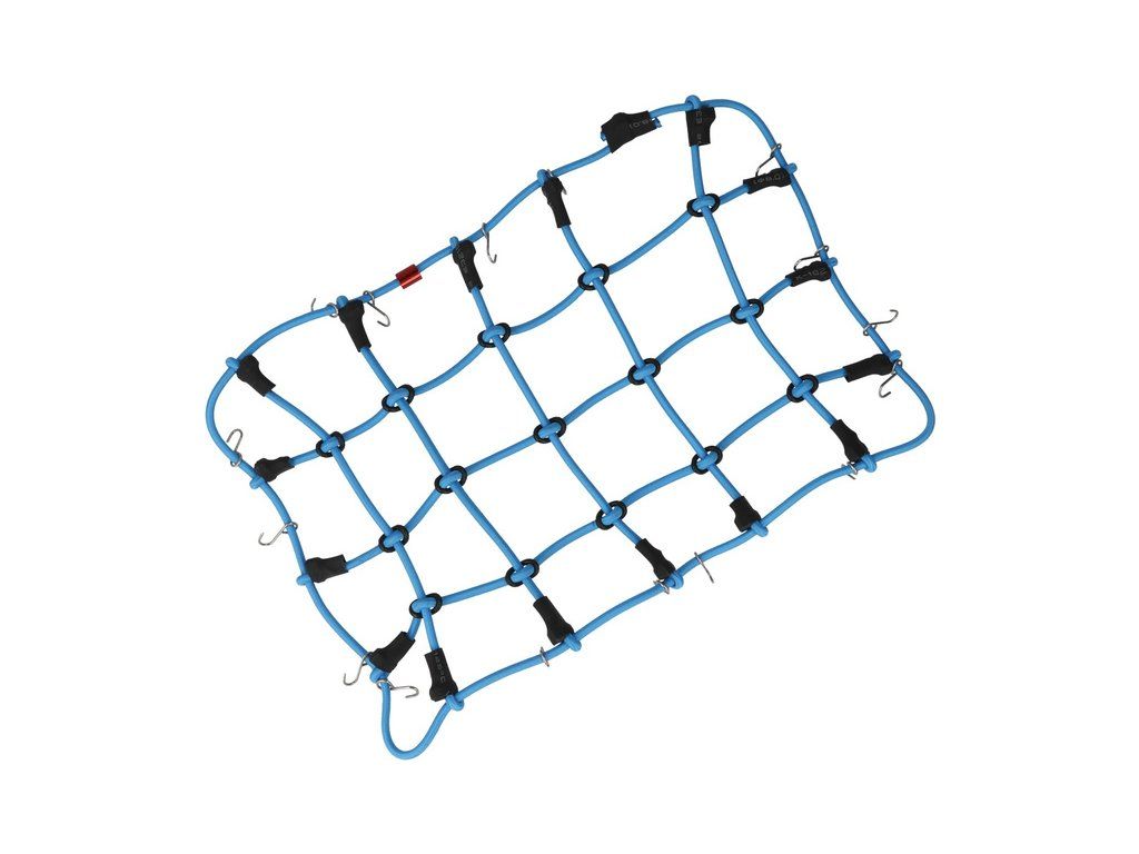 Robitronic Vám nabízí poutací síť s háčky pro RC modely aut. Pokud převážíte zavazadla nebo těžký náklad poutací síť je skvělý pomocník. Síť je pletena z modré kloboukové gumy 3 mm, rozměr je 190 mm x 120 mm. Na každé straně jsou umístěny 3 háčky pro připevnění.