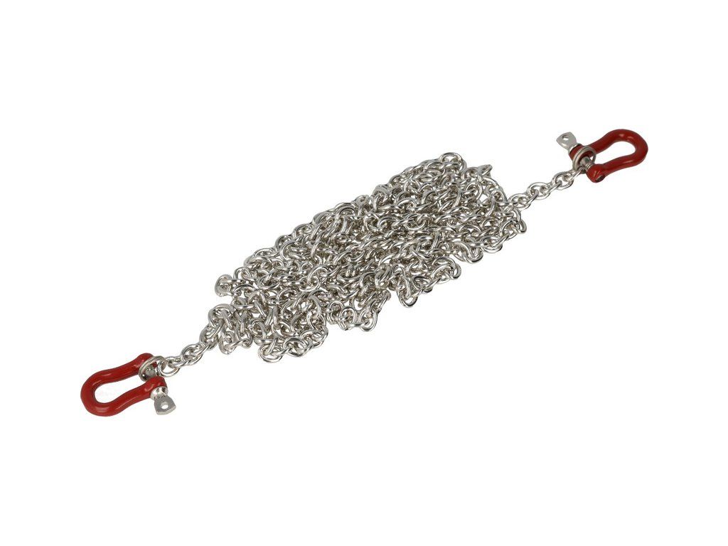 Robitronic Vám nabízí detailně zpracovanou maketu řetězu s oky pro RC modely aut. Řetěz má šířku 4 mm a délku 1100 mm, rozměry oka jsou 19 x 12 mm o průměru 3 mm. Řetěz je vyrobený z kovové slitiny o hmotnosti 43 g.