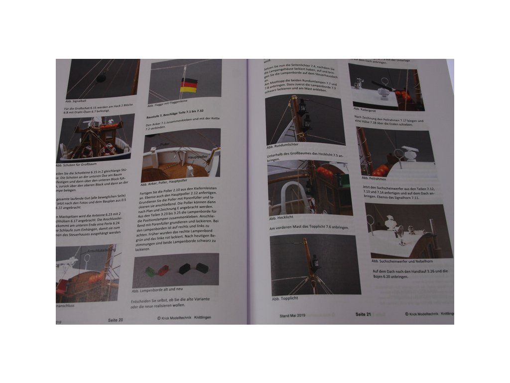 Obsahem balení je kompletní stavebnice lodi Antje rybářský kutr kit. Balení obsahuje trup a palubu z ABS, sadu překližkových a plastových dílů, sadu kulatých lišt, sáček s drobnými díly, sadu výkresů, plány, český návod ke stavbě a obrazový manuál v němčině.