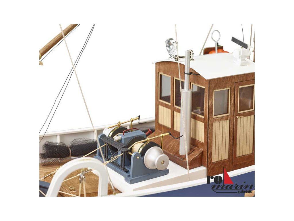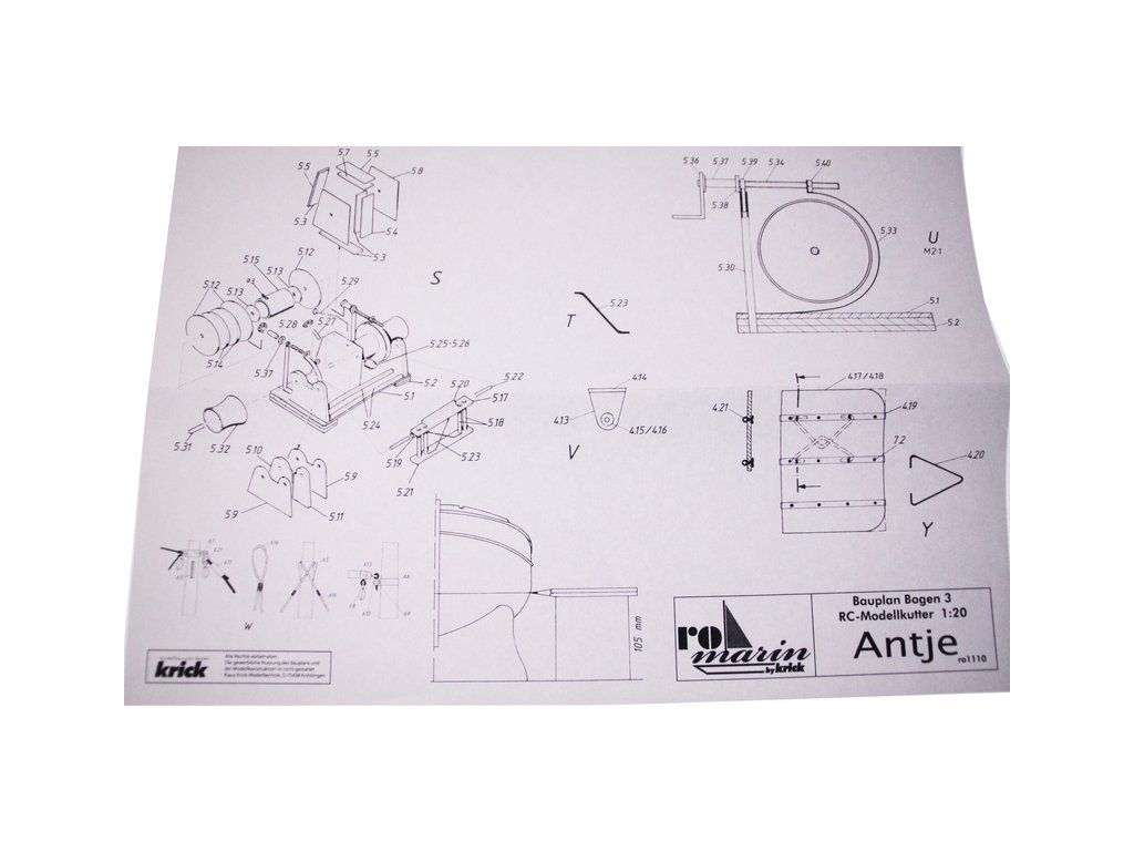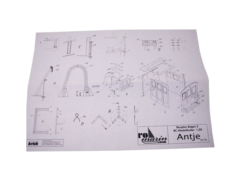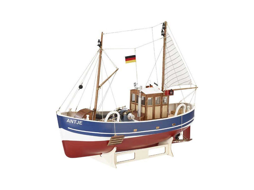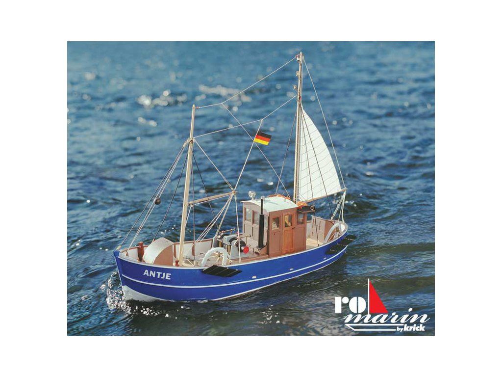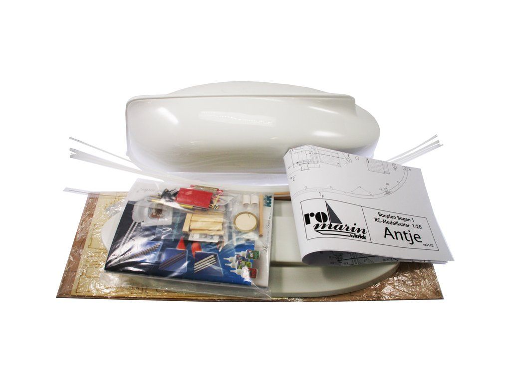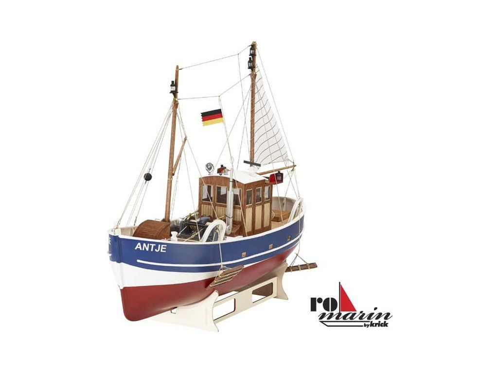 ROMARIN Antje rybářský kutr kit patří mezi jednodušší stavebnice lodí. Hotový výlisek trupu lodi a prefabrikace jednotlivých komponent zjednodušuje a zrychluje stavbu modelu. Prostorný trup nabízí dostatek místa pro velkou baterii, motor s regulátorem a RC vybavení. Obrazový návod a výkresy objasní postup stavby.