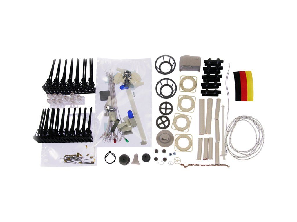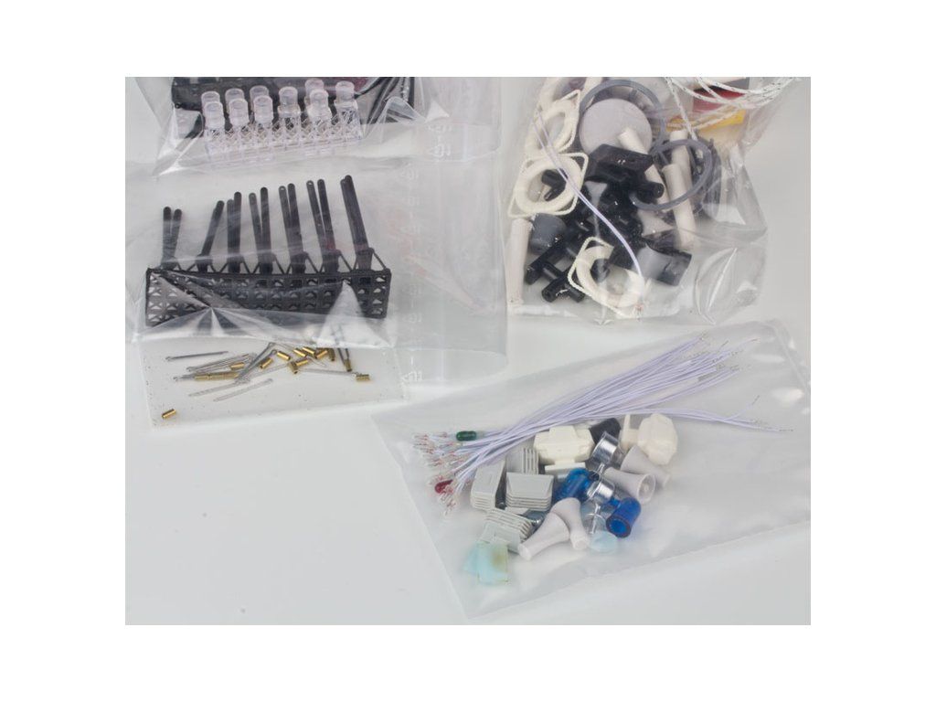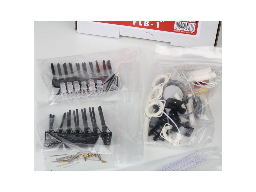 Doporučené příslušenství pro model lodi ROMARIN Hasičská loď FLB-1 - maketové doplňky. V balení jsou součásti zábradlí, LED osvětlení, záchranné kruhy, koše na lana, maketu navijáku s řetízkem, vlajku, vazáky, součásti stožárů, radaru a další.