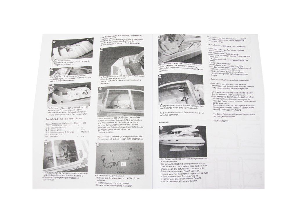 Stavebnice RC modelu lodi od firmy ROMARIN, motorová jachta Najade kit. Model je určen pro začínající lodní modeláře. Obsahuje plastové díly trupu, paluby a interiéru, dřevěné součásti konstrukce, průhledný díl kabiny, kovové součásti, montážní součásti a příslušenství, obrázkový a český návod.
