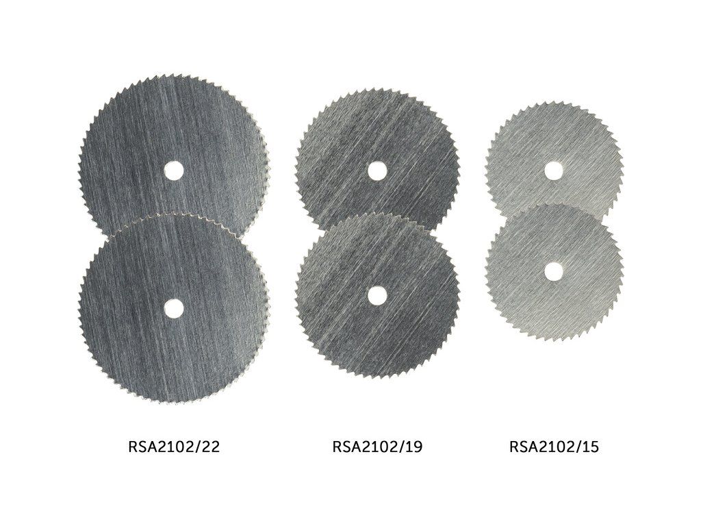 Rotacraft pilový kotouč o průměru 22mm (2ks v balení) pro použití na plasty, měkké dřevo a neželezné kovy. Upíná se na stopkový unášeč 2,35mm SH-RAR1304