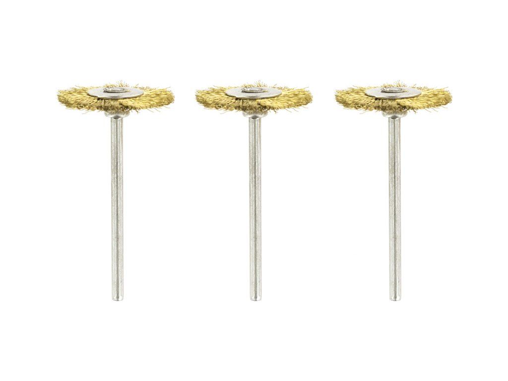 Rotacraft stopkový drátěný kotouč mosazný (3ks v balení) je určen pro šetrné čištění kovu, plastu, skla, keramiky, kamene, opravy apod. Stopka do kleštiny 2,35mm, průměr kotouče cca 20mm.