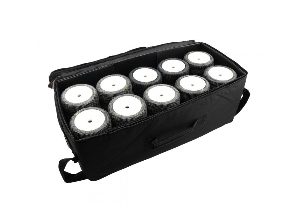 - Dostatečný prostor pro 10 sad pneumatik pro buggy 1/8 nebo expediční vozidlo 1/10.
