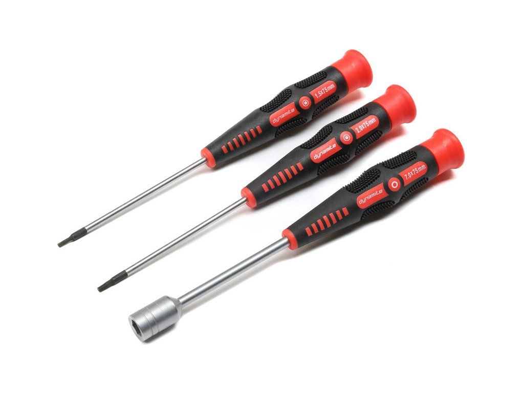 Sada nářadí Dynamite® Startup Tool – ideální pro údržbu a servis RC modelů aut, popřípadě dalších zařízení. Cenově dostupná sada v praktickém pouzdře je přesně navržena pro ARRMA® GROM a Losi® NASCAR. Obsahuje šroubováky - 1x imbus 1.5 mm, 1x imbus 2 mm, 1x nástrčný šestihranný 7 mm.