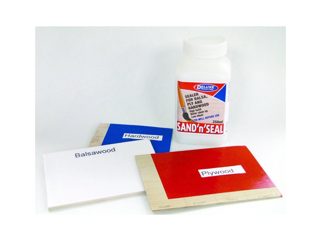 Přípravek Sand And Seal slouží jako podkladní vrstva pod barvu. Vyplní póry a celkově zpevní povrch dřeva, překližek a balsy. Nanáší se štětcem, po jedné hodině lze povrch přebrousit a následně nabarvit. Přípravkem lze natřít plochu asi 1.5 m².