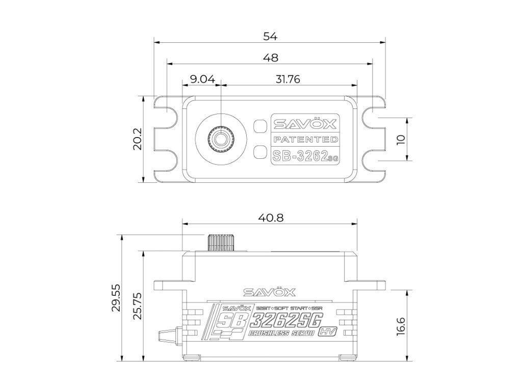 S novým servem SB-3262SG dosáhl tchajwanský výrobce Savöx opět revoluce v technologii servopohonů. Nově vyvinutý osmipólový střídavý motor tohoto monstra zajišťuje nejen nižší hmotnost (53 g) ve srovnání se svým předchůdcem SB-2262SG (62 g), ale také vyšší výkon a výrazně nižší produkci tepla. Po 5 minutách provozu zůstává oproti SB-2262SG až o 20 % chladnější. Toto výrazné zlepšení znamená, že servo podává maximální výkon po mnohem delší dobu a model je výrazně tvrdší, přímější a přesnější.