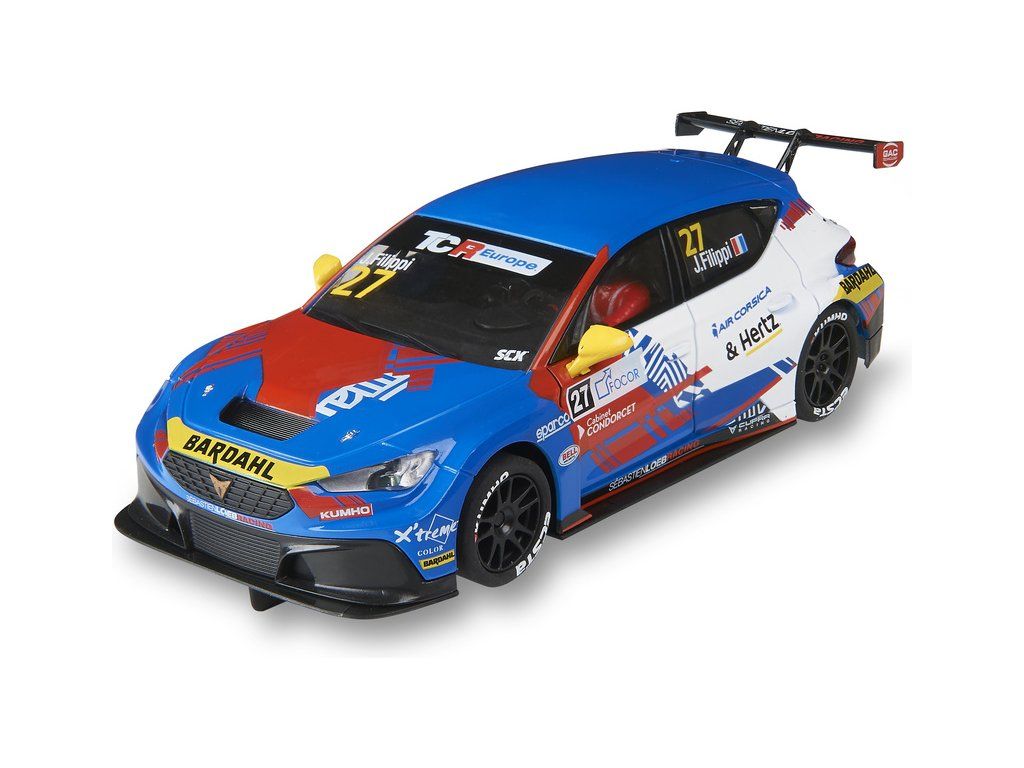 Dráhové autíčko SCX Advance Cupra Leon Competition J. Filippi v měřítku 1:32, s osvětlením pro digitální autodráhy SCX Advance. Verze 2.0.