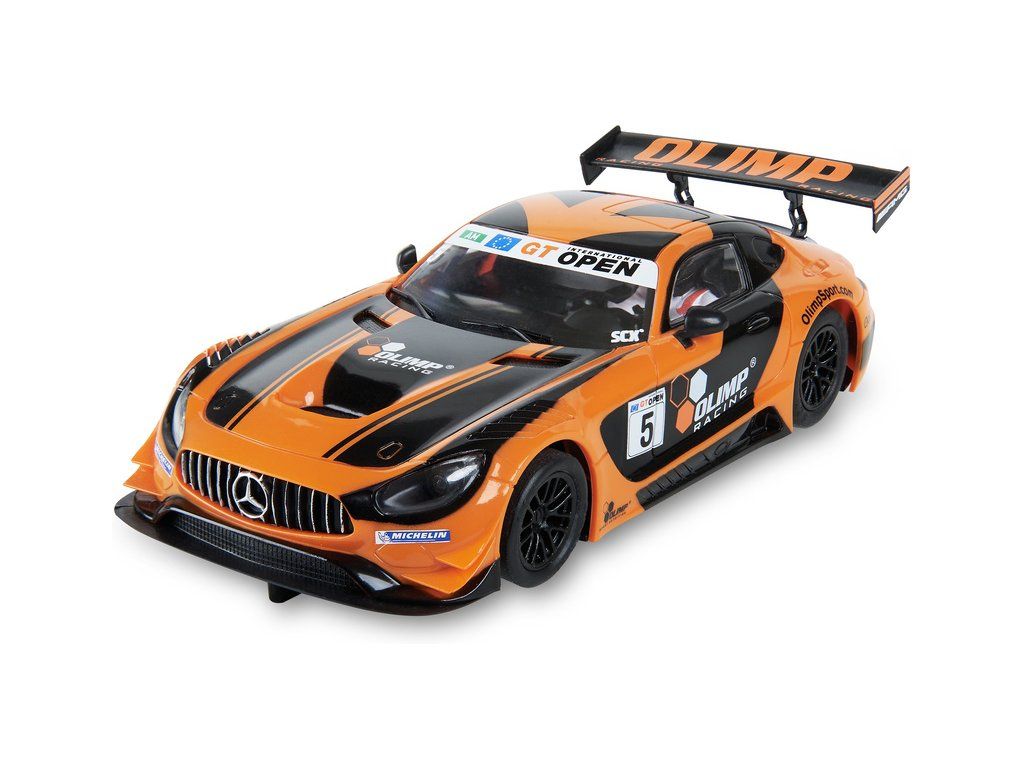 Dráhové autíčko SCX Advance Mercedes AMG GT 3 Vodafone v měřítku 1:32, s osvětlením pro digitální autodráhy SCX Advance.