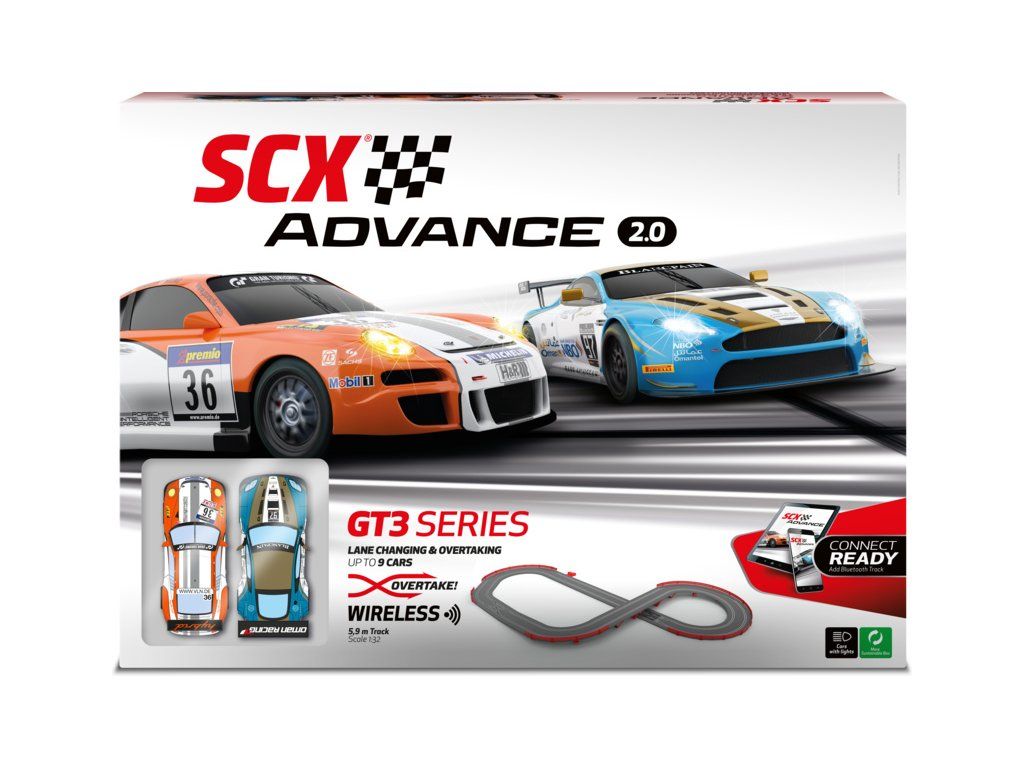 SCX Advance GT3 Series 2.0 v klasickém měřítku 1:32 - vynikající digitální elektrická autodráha s předjížděním v křížení, mostem a svodidly. Dva bezdrátové ovladače s přepínačem výhybky, dvě digitální dráhová autíčka s LED světly. Plocha pro rozložení: 220 x 184 cm. Délka tratě: 5,9 m.