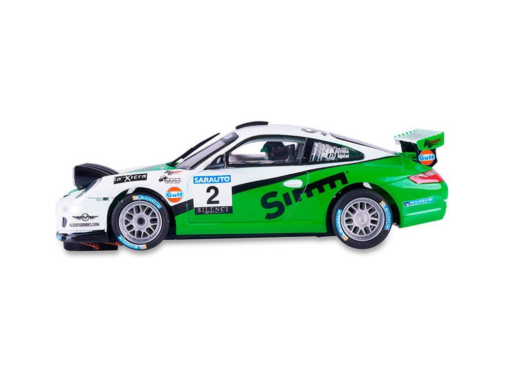 Dráhové autíčko SCX Advance Porsche 911 RALLY Orriols v měřítku 1:32, s osvětlením pro digitální autodráhy SCX Advance.