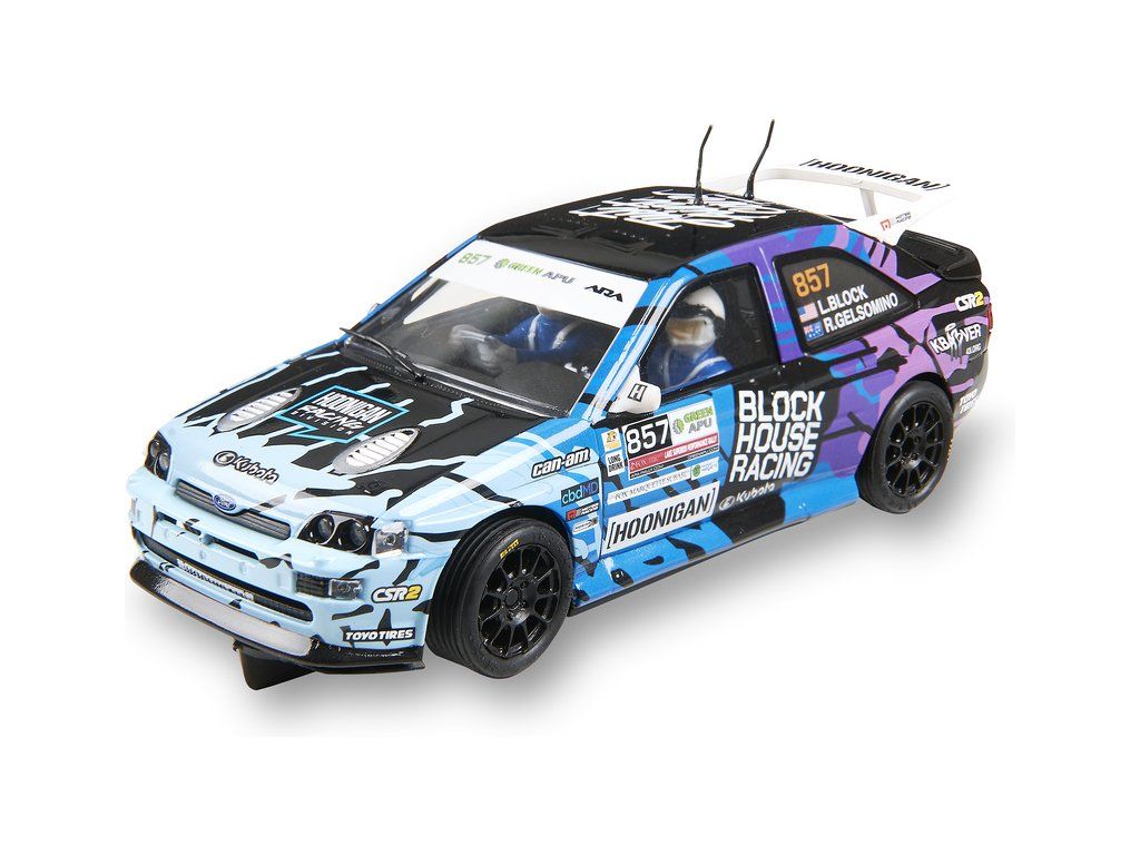 Dráhové autíčko SCX Classic Ford Escort Cosworth Lia Block v měřítku 1:32, s osvětlením, pro analogové autodráhy SCX Classic. Pokud doplníte SCX Advance Konverzní sada typ A - dlouhý SCXE10405X200, můžete auto použít pro autodráhu Advance.