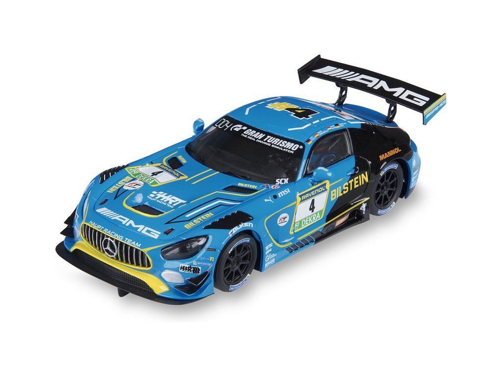 Dráhové autíčko SCX Classic Mercedes AMG GT3 - Blistein v měřítku 1:32, s osvětlením, pro analogové autodráhy SCX Classic. Pokud doplníte SCX Advance Konverzní sada typ A - dlouhý SCXE10405X200, můžete auto použít pro autodráhu Advance.