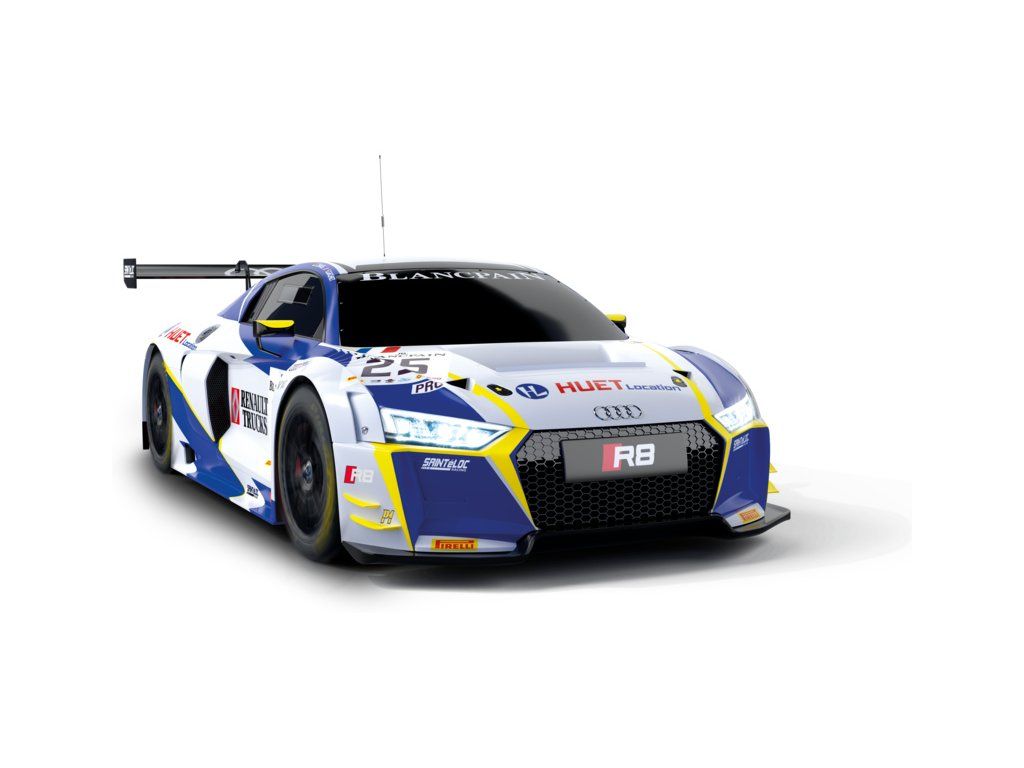 Dráhové autíčko SCX Compact Audi R8 LMS GT3 Huet v měřítku 1:43, pro autodráhy SCX Compact. Autíčko není vybaveno světly.