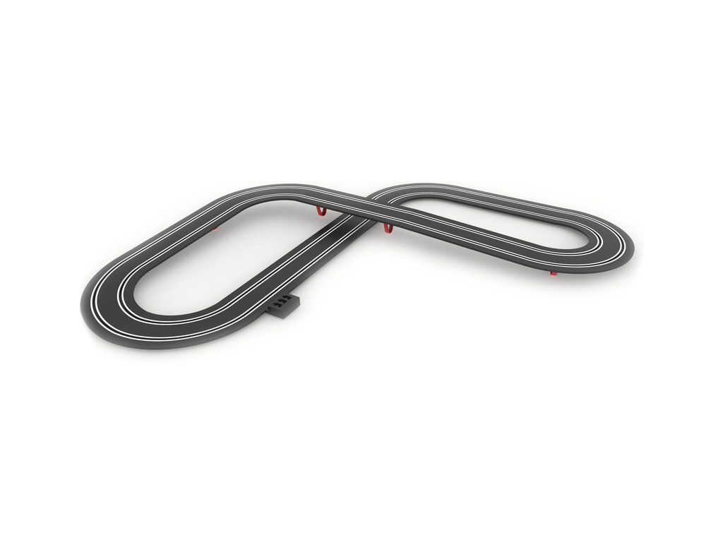 Balení obsahuje traťové díly, most, 2x dráhové autíčko, 2x ovladač a napájecí zdroj.