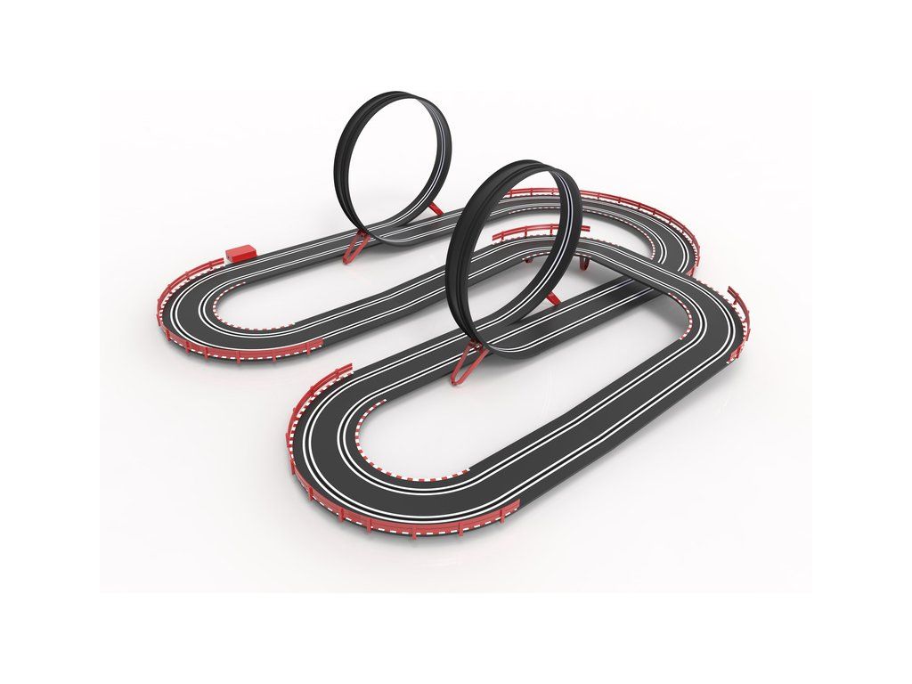 Balení obsahuje traťové díly, most, svodidla, dvojitý looping, 2x dráhové autíčko, 2x ovladač a napájecí zdroj.