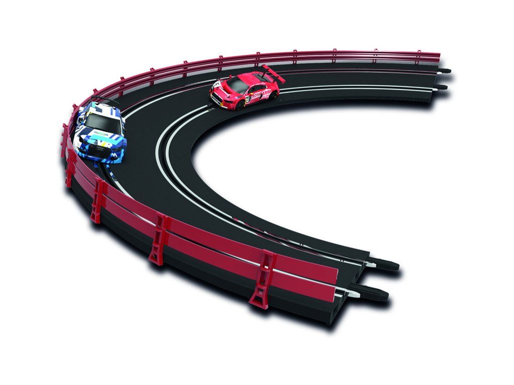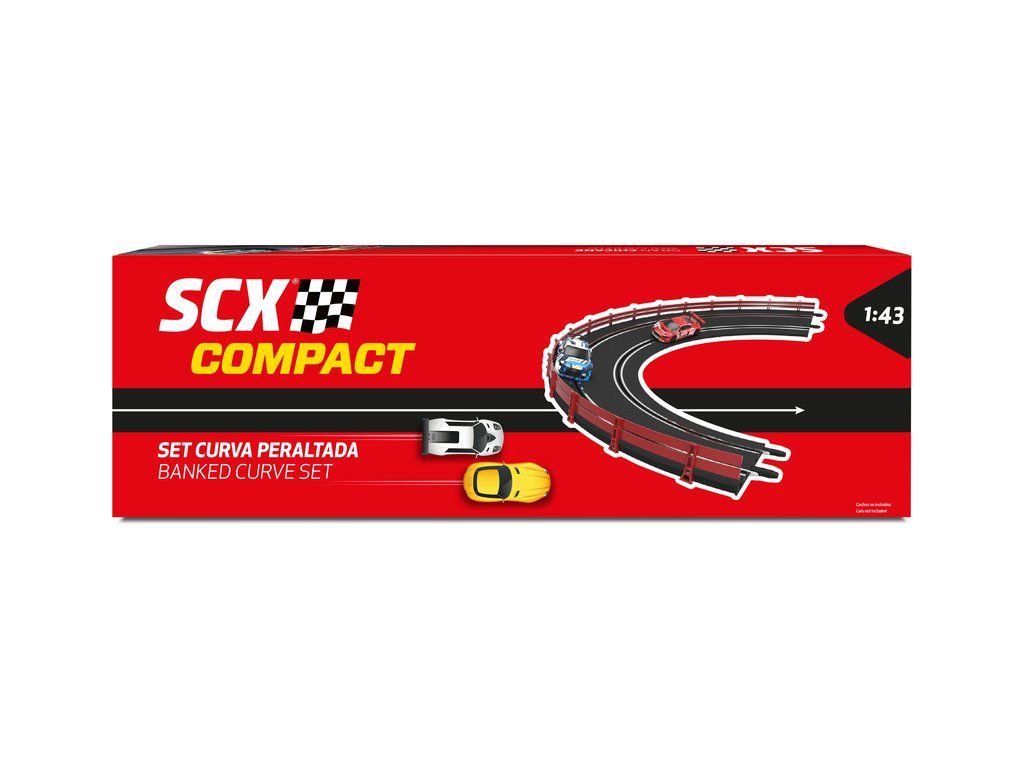 SCX Compact - Klopená zatáčka sada - balení obsahuje 4x zatáčku, 3x podpěru a 4x svodidla. Sada pro rozšíření autodráhy SCX Compact v měřítku 1:43.