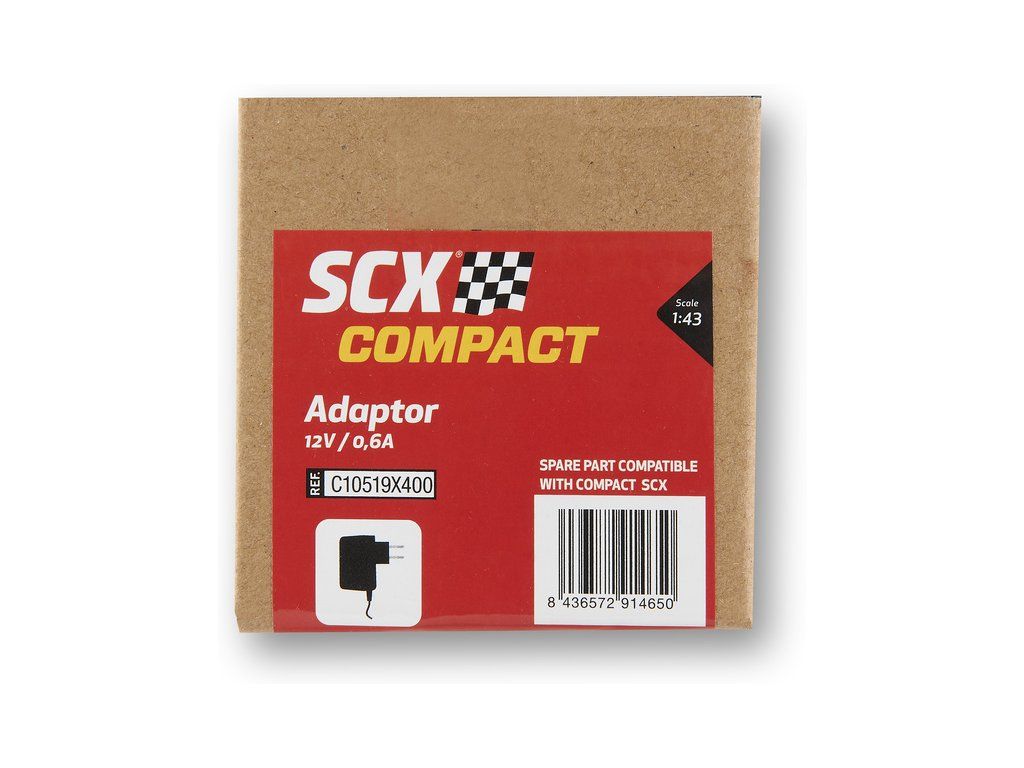 Náhradní transformátor pro napájení autodráh SCX Compact 1:43. Výstupní napětí transformátoru je 12 V / 0.6 A. Transformátor je určen pro autodráhy SCX Compact 1:43 s napájecí rovinkou s konektorem Jack.