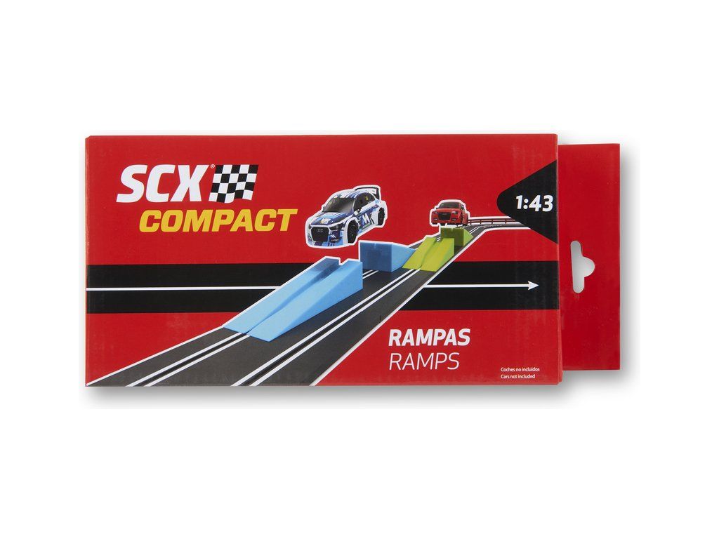 SCX Compact Rampa pro autodráhy SCX v měřítku 1:43. Zažijte ještě více zábavy se skokánkem na trati, který je tvoře odrazovou a doskokovou rampou. Balení obsahuje dvě sady.