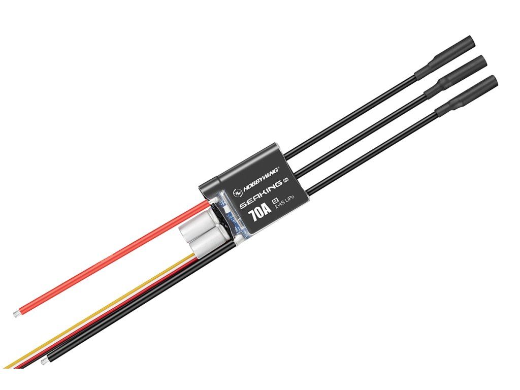 - Vhodný pro valnou většinu lodních střídavých bezsenzorových motorů s napájením z akumulátorů 2-4S LiPo.