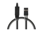 Plochý prodlužovací kabel s konektory JR o délce 60cm s PVC izolací v elegantní černo/šedé barvě. Průřez vodičů 0,33mm2 / 22AWG. Zásuvka (protikus) je opatřena zacvakávací...