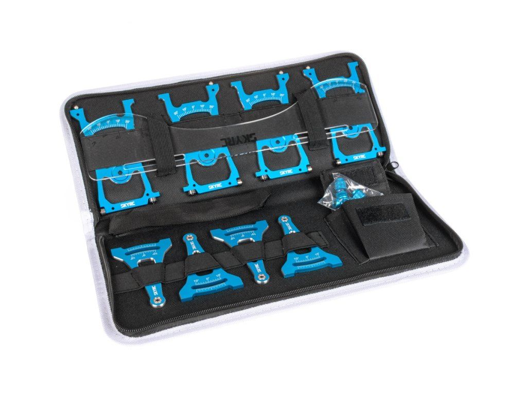 Profesionální sada pro nastavování závodních podvozků 1/10 off-road v polstrovaném přepravním obalu.