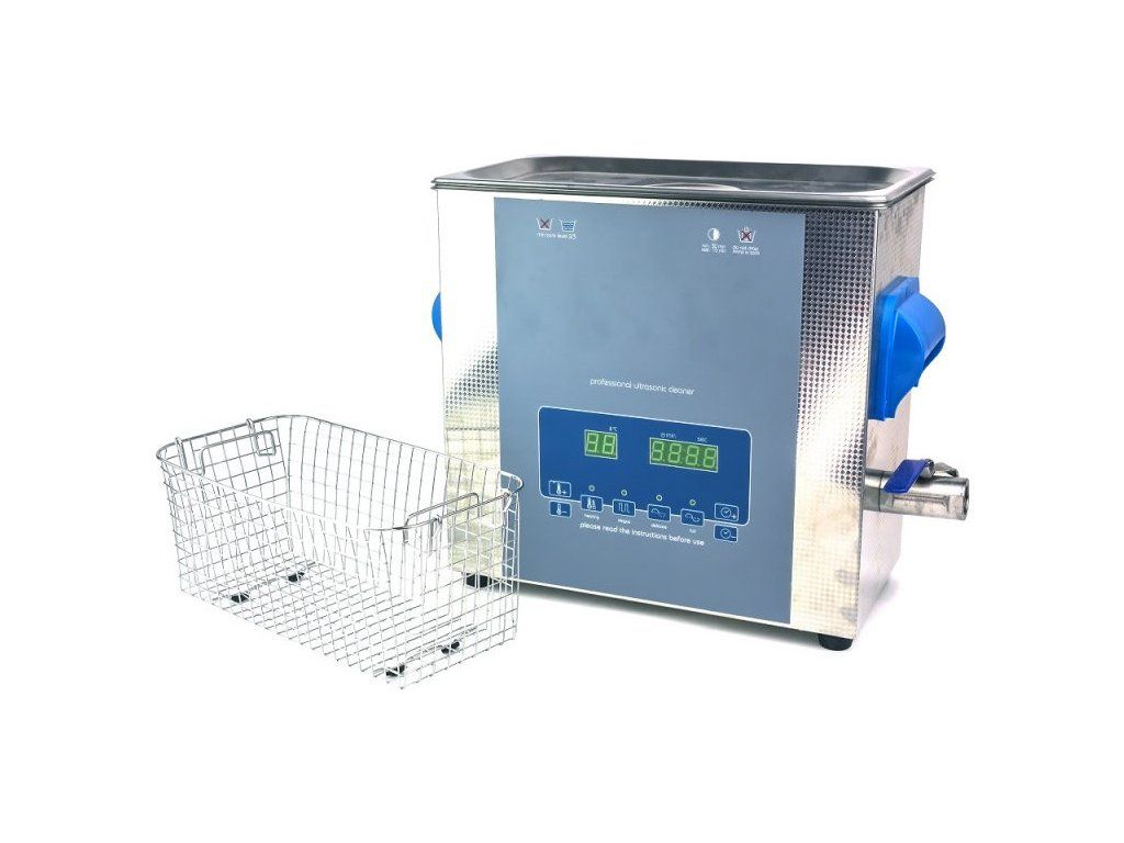 Shesto ultrazvuková čistička s ohřevem o objemu nádoby 6l odstraňuje nečistoty, mastnotu, korozi - používá se k čištění elektronických a mechanických součástí, které se jinak obtížně čistí. Nádrž, kryt a košík jsou z nerezové oceli. Možnosti nastavení výkonu, teploty a doby.
