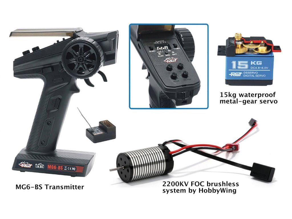 FOC střídavý motor 2200KV a regulátor mají konstrukci „vše v jednom“ pro kompaktnější a lehčí sestavu. Nabízí silný točivý moment při nízkých otáčkách, vynikající linearitu a plynulý, tichý provoz. Systém má stupeň krytí IP67 pro vodotěsnost a prachotěsnost a daří se mu v jakémkoli prostředí, od blátivých cest po kamenité svahy.