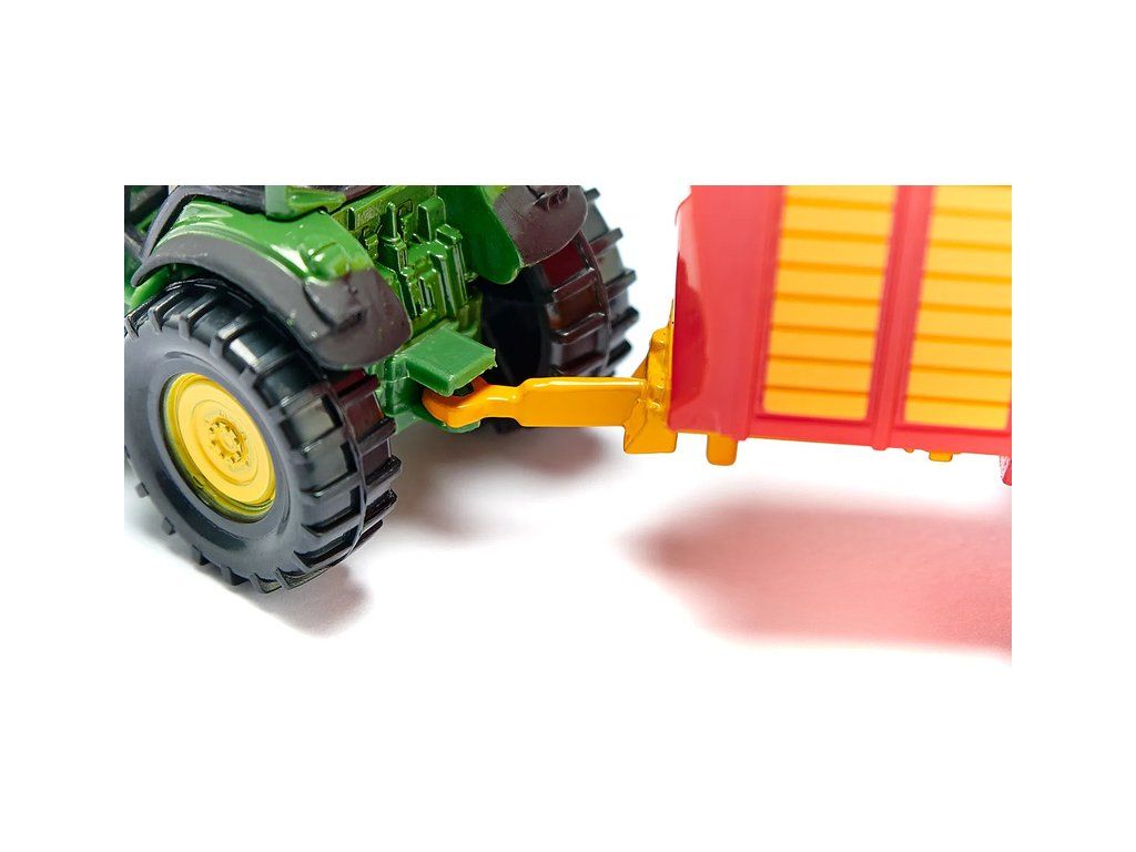 Kovový model traktoru Claas s přívěsem na siláž, délka přibližně 17 cm, měřítko 1:87. Traktor je vybaven tažným zařízením a odnímatelnou střechou. Dvounápravový přívěs s korbou je odpojitelný a má otevírací zadní čelo. Vhodné pro hraní i sběratelství. Kvalitní zpracování z kovu a plastu. Baleno v blistru.