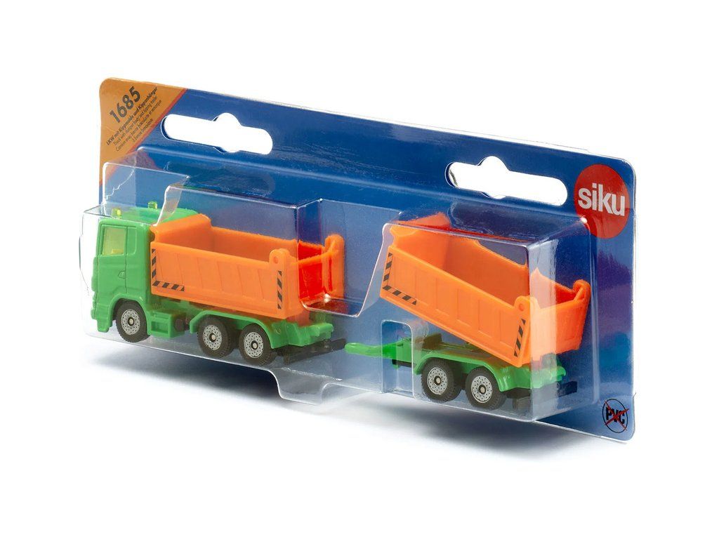 SIKU Blister - Nákladní auto se sklápěcí korbou a vlekem