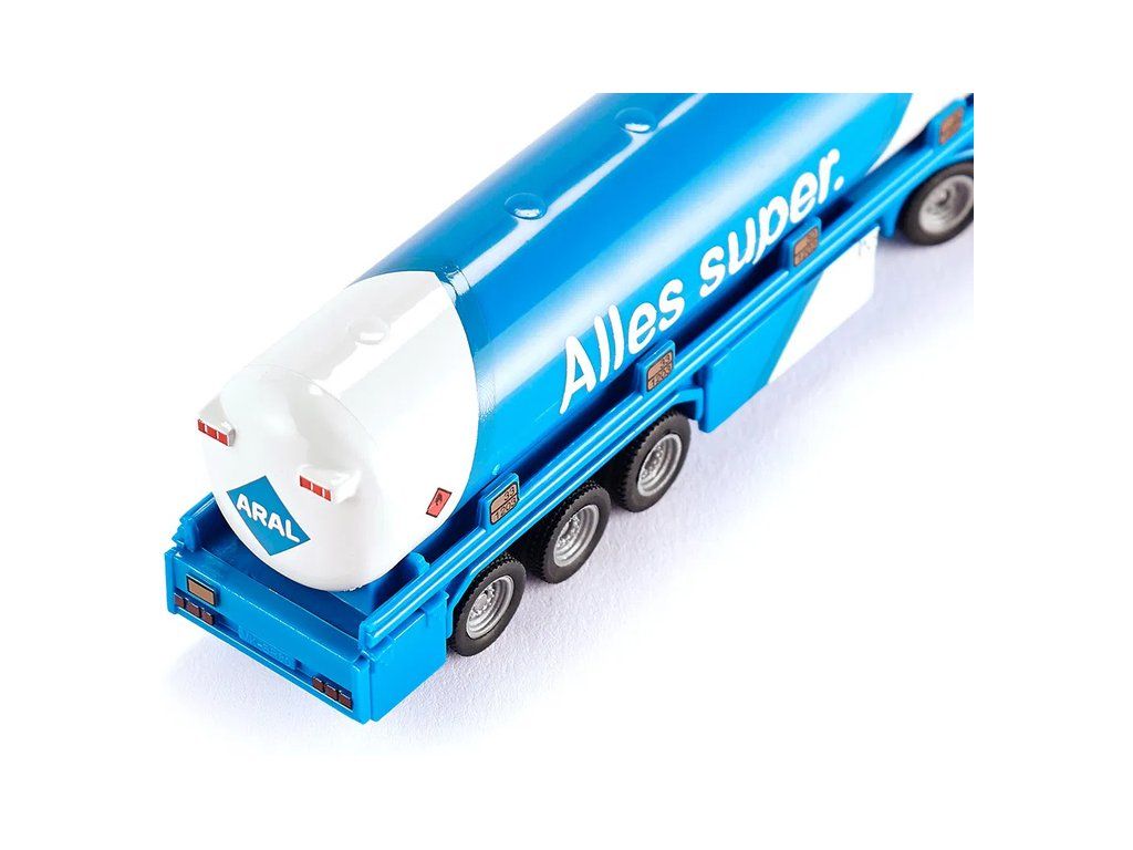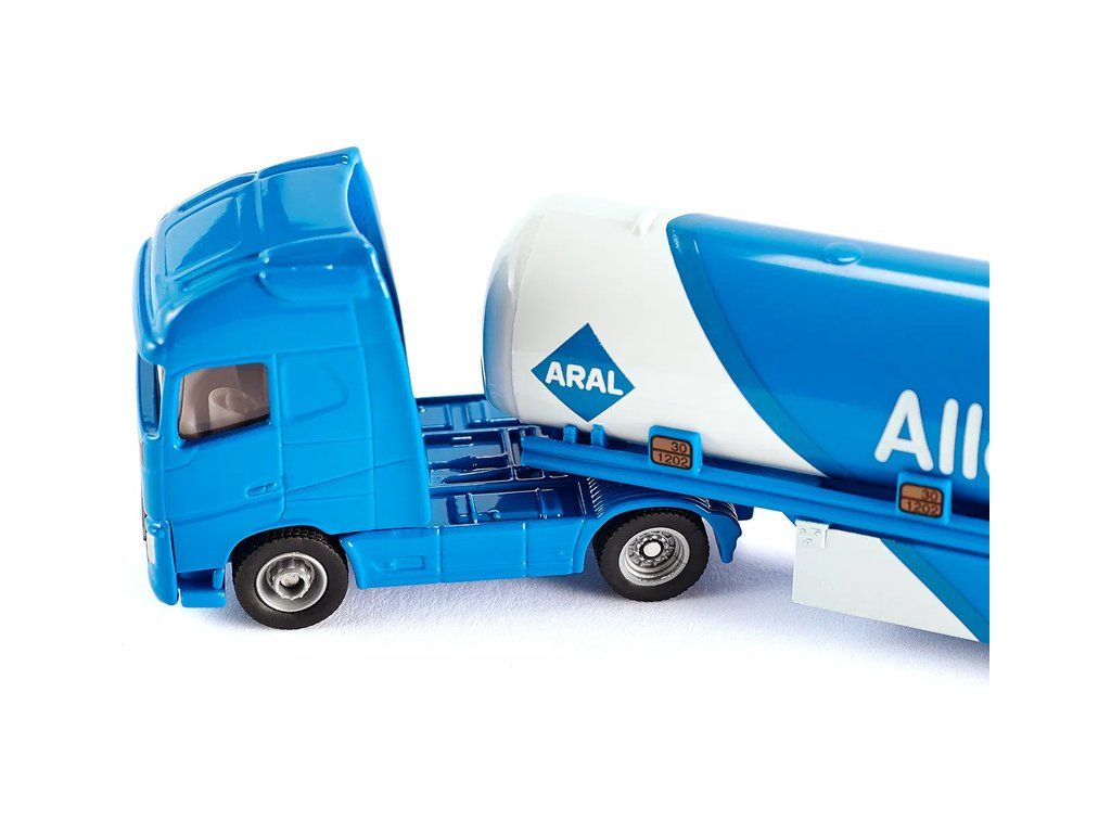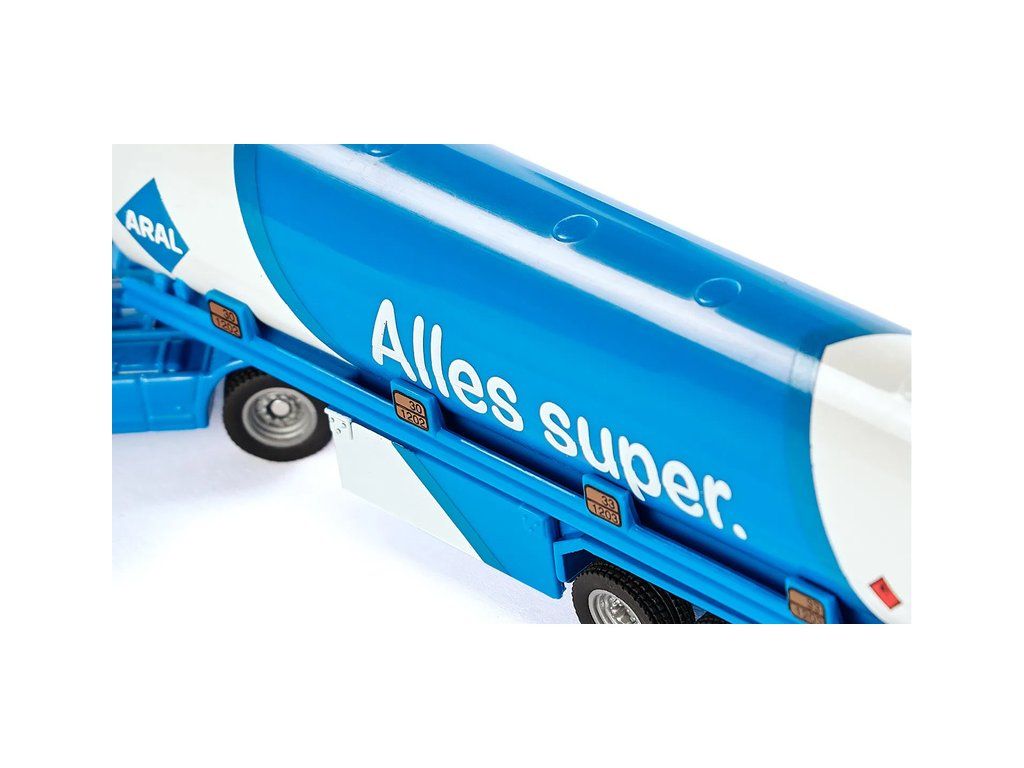 Kovový model tahače s cisternovým návěsem od značky Siku, délka přibližně 17 cm, měřítko 1:87. Tahač je vybaven čirými okny. Návěs je odpojitelný a má výklopné patky pro samostatné stání. Vhodné pro hraní i sběratelství. Kvalitní zpracování z kovu a plastu. Baleno v blistru.