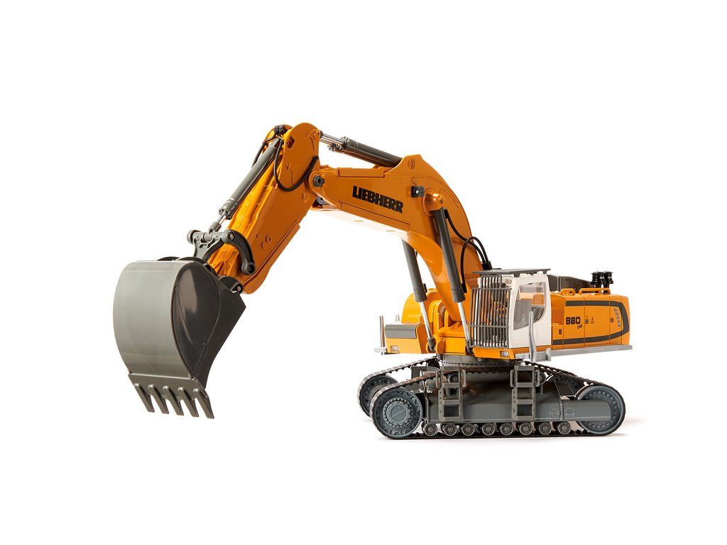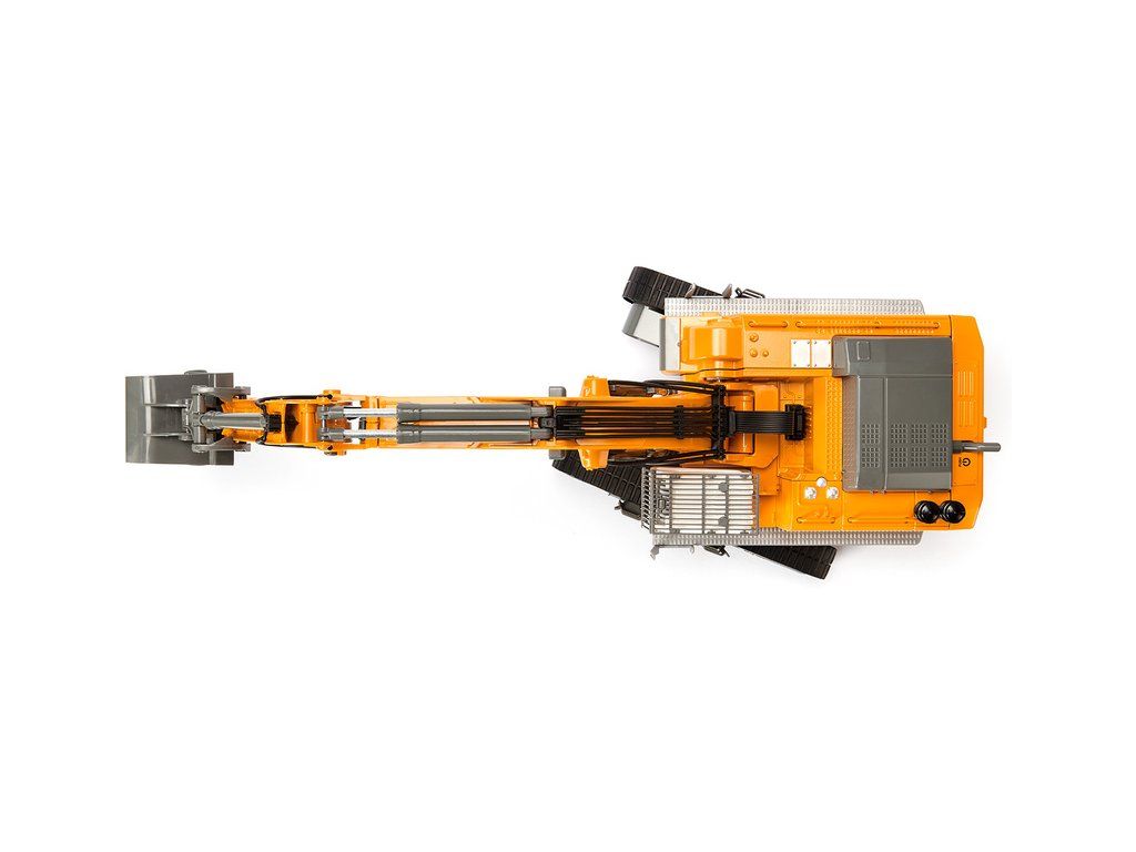 Kovový model pásového rypadla Liebherr R980 SME na dálkové ovládání přes telefon v měřítku 1:32. Šest dálkově řízený funkcí - jízda, zatáčení, otáčení kabiny, dva klouly ramene a výklopná lžíce. 8 LED diod, zvuky v aplikaci. Vhodné pro hraní i sběratelství. Kvalitní autentické zpracování z kovu a plastu.