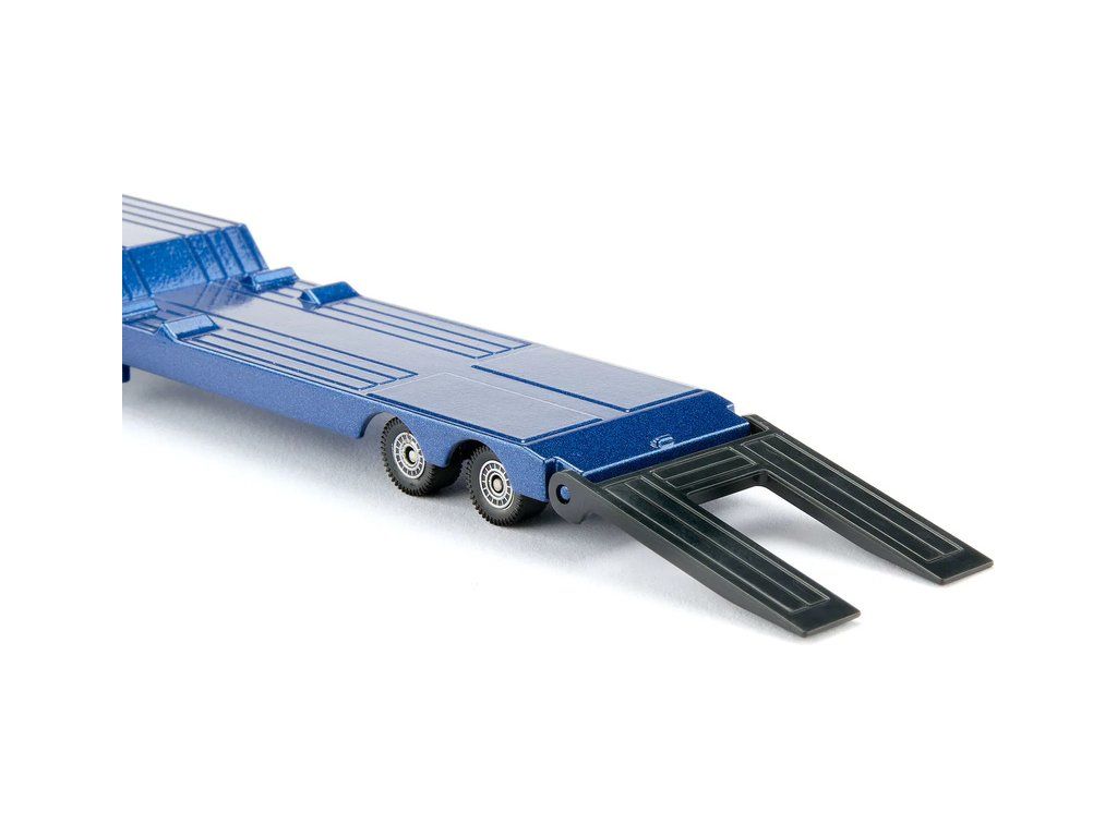Kovový model tahače MAN s návěsem a rypadlem v měřítku 1:87 od značky Siku. Tahač s čirými okny a zpracovaným interiérem, včetně odpojitelného dvounápravového návěsu se sklopnými nájezdy. Model rypadla má pohyblivý přední nakladač i zadní rypadlo. Vhodné pro hraní i sběratelství. Kvalitní zpracování z kovu a plastu.